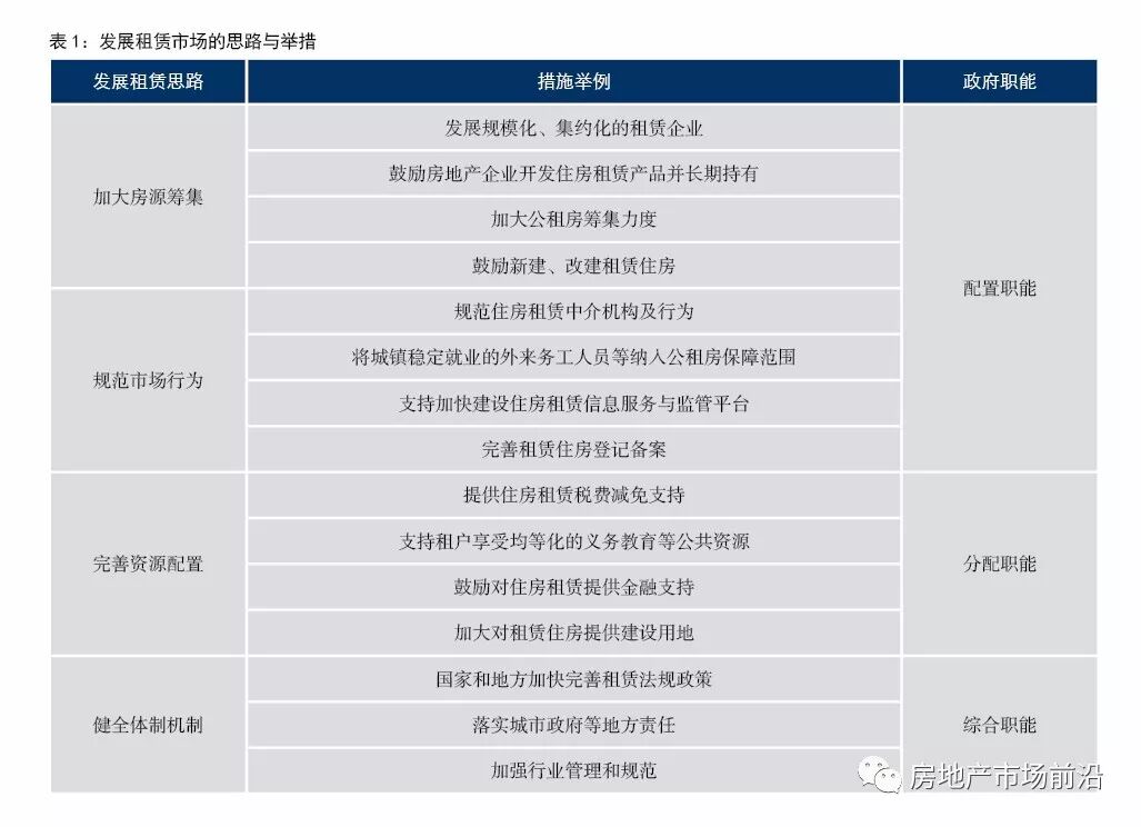 总结本轮发展租赁市场的政策措施有五项特点:一是政府主导,强力推动,均强化了政府的组织领导,要求明确部门职责,完善工作机制;二是措施全面,指向明确,不仅涉及房屋管理服务体制机制,而且从供地、金融、信息化等多个维度综合施策,确保住房租赁目标指向;三是规定细化,着眼落实,除了明确总的原则和方向外,工作措施十分具体,诸如规范租赁合同、建立住房租赁平台、规范中介机构等细则操作性很强;四是扩展外延,增强服务,从传统的房管领域向外扩展,结合家庭使用需求,提出了完善配套教育等公共服务系列措施,赋予租房者同等权益;五是引入科技,注重创新,各地均十分重视网络、app等信息技术的应用,通过完善线上服务,提高服务效率。
