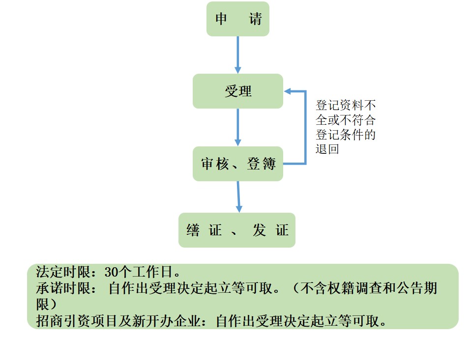 政府招商引资项目及新开办企业类:自作出受理决定后,立等可取。